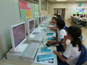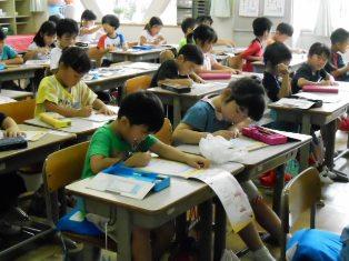 1年生と4年生、どちらも真剣にドリルなどに取り組んでいます。