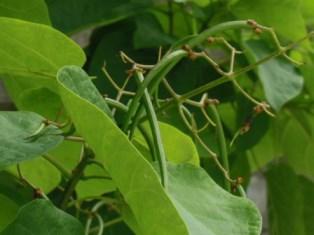花は、紫色ではありません。6月に入り、細長い実が成りました。
