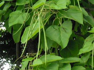 今日見ると、それが、更に伸びてきました。桐なら丸い実が成るので、
