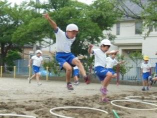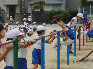 鉄棒や短距離走、走り幅跳びなどで、体力作りです。