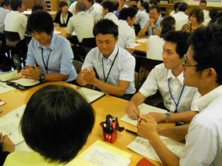 参加した先生方による伝達が行われ、各教科・領域の協議会での指導内容等