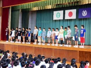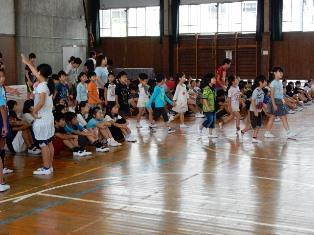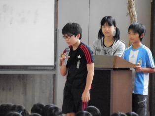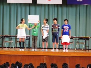 楽しいクイズを企画した集会委員の皆さん、協力して参加した