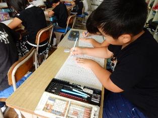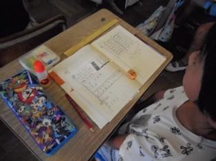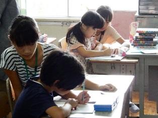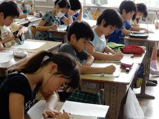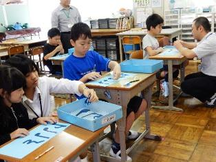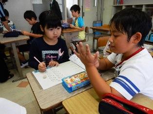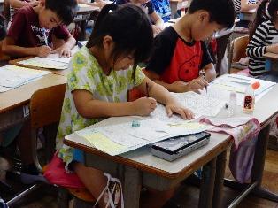 1年生は国語で、漢数字の学習です。四、五の練習をしています。