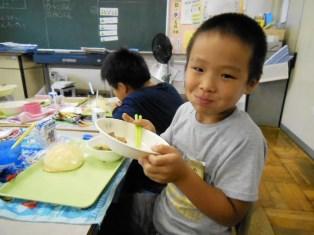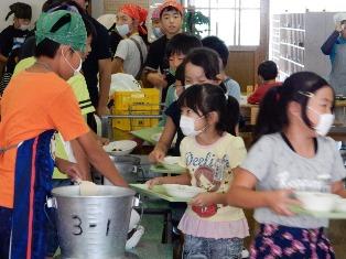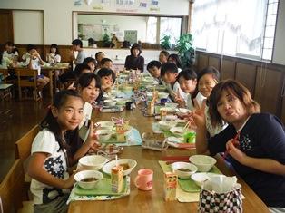 6年生と3年生、そして職員も、和やかに給食を食べていました。
