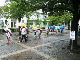 今日は、傘の心配もなく、いつもより軽やかな足取りで子どもたちが