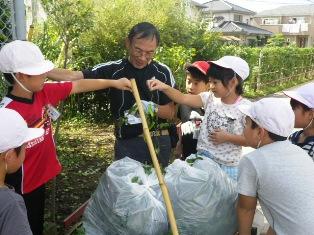 学校応援団の方に来ていただき、稲のかりかたと脱穀を教えていただきました。