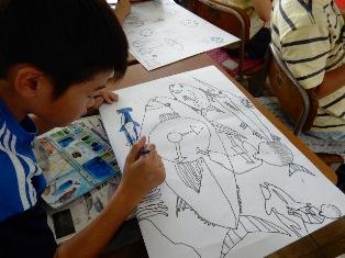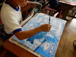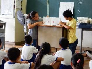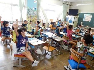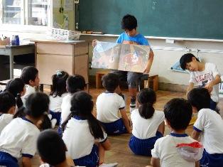 1年生は国語で、「うみのかくれんぼ」の授業の様子です。