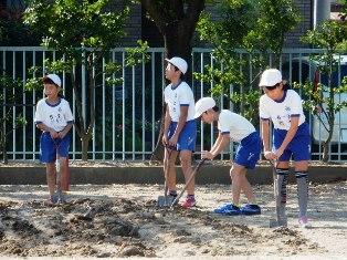 雨が上がり、久しぶりに外に出られる業間の休み時間です。
