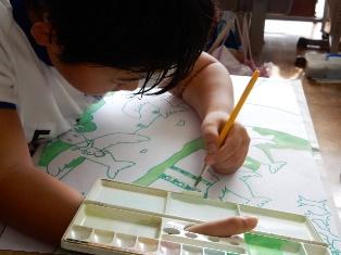 生憎の雨で、外を予定していたグループも室内での活動になって