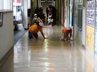 登校してきました。昨日まで冠水が続いた場所もだいぶ水が引き、