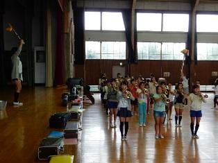 昼休みの体育館では、金管バンドクラブとバトンクラブの皆さんが