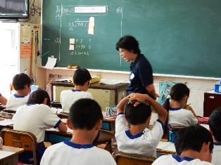 1年生は国語で、漢数字の学習です。四、五の練習をしています。