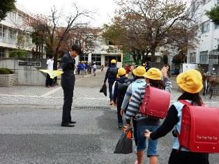 指揮者の担任の先生をしっかり見て、目を開いて、笑顔で大きな