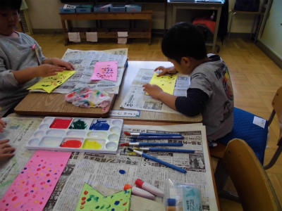 6・7・8組 世界に一つ、こいのぼりをつくっています。