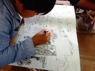 5年生は図工の授業で、「未来の春日部」をテーマに描いています。