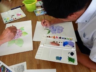 についてご指導いただきました。あじさいの下絵をご用意いただき