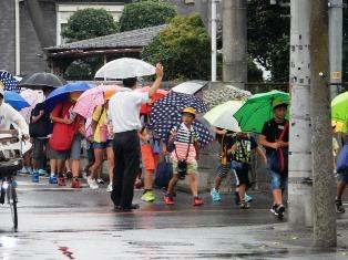 今日も保護者、地域の皆様、交通指導員さんに見守られ