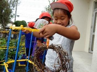 ツルはクルクルと巻いて、リースの材料にする予定です。