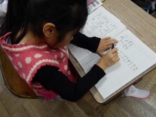 2年生は算数で、103-25のような計算の仕方を考え、