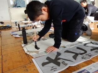 6年生は体育館で書き初めの練習です。