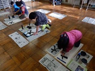 3年生は図工室で書き初めの練習です。初めての毛筆。
