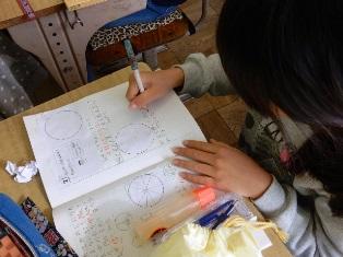 4年生は円の学習で、中心の求め方を考えています。