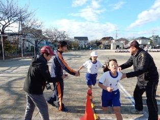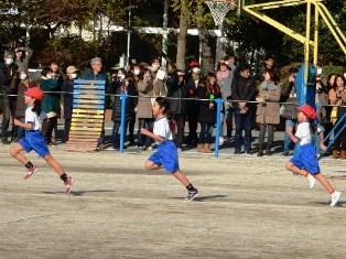 ゴールまで、後少し。先生が大きな声で声援を送っています。