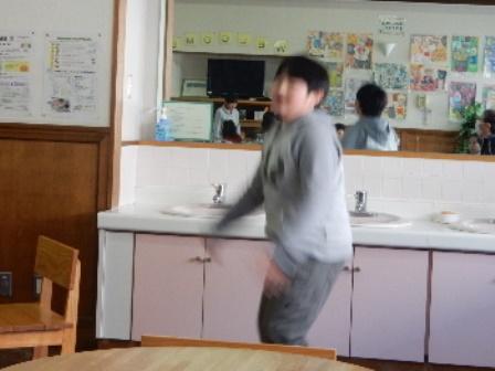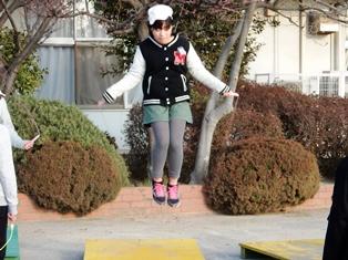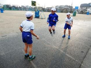 少し早めに校庭に来て、8の字跳びの練習をしています。