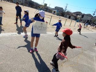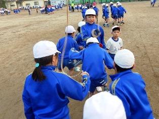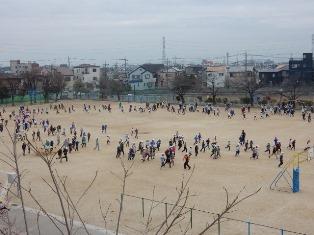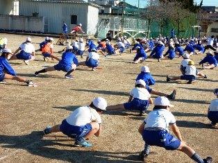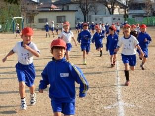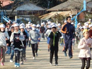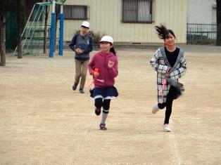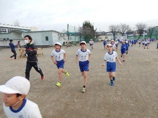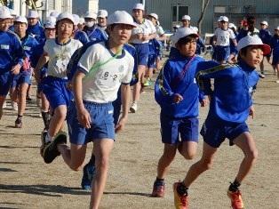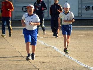 北風の冷たい朝でしたが、元気に走る子どもたちです。