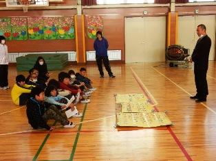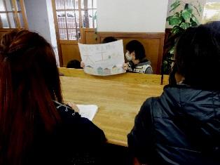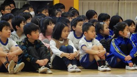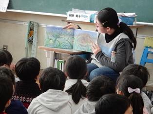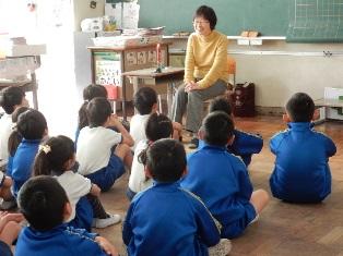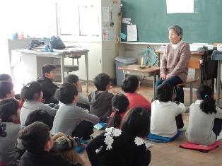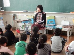 最終日になりました。今日は、1年生と2年生がおはなしを聴きました。