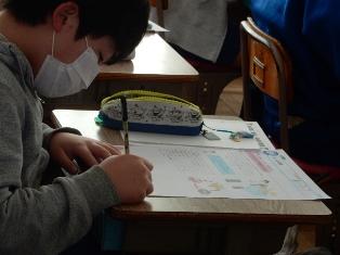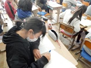 5年生は図工で、「ビー玉大ぼうけん」の設計図を書いています。