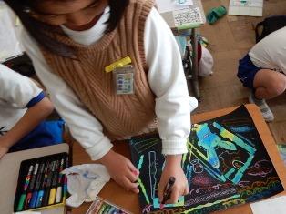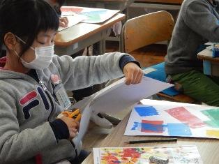 2年生は図工で、「うつして、みつけて」をテーマに作品を制作しています。