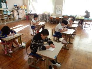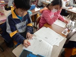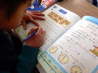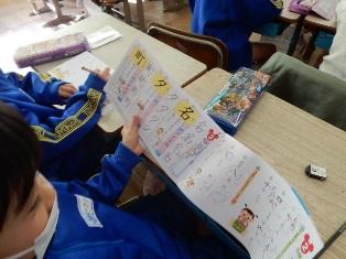 1年生は国語で、漢字の学習です。1年生は80個の漢字を