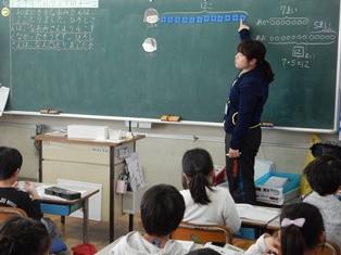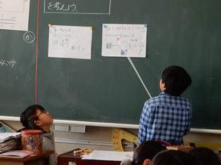 1年生は算数で、文章題を考え、みんなに説明しています。