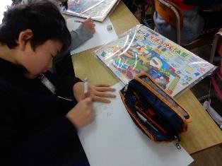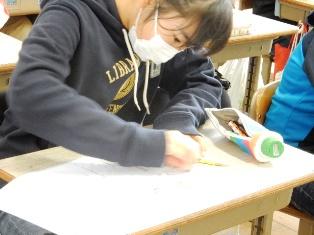 5年生は図工で、「ビー玉大ぼうけん」の設計図を書いています。