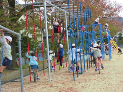 ジャングルジム、たくさんの子が上を目指して登っていました。
