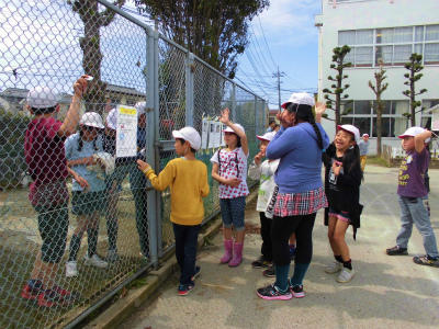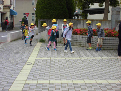 1年生も元気よく登校しました。手を繋いでなかよく登校してきましたね。