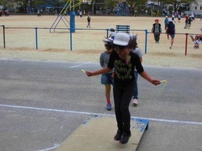 登校してすぐに、校庭に出て子どもたちは元気いっぱい遊んでいます。