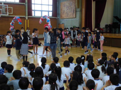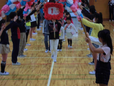 会も終わり、6年生と手を繋いで一緒に退場しました。
