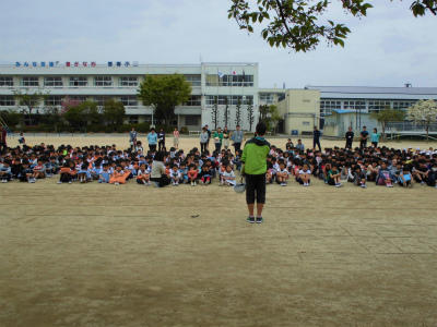 さわやかタイム終了後、4年生は担任の先生の指示を受けています。