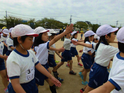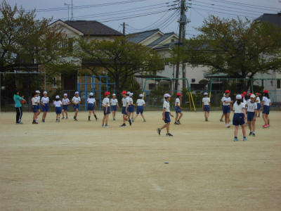 2年生:体育の授業でこれから準備運動に入ります。
