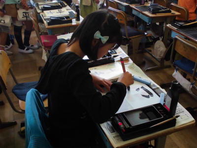 5年:書写、『平和』を書いています。集中していますね。