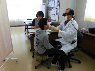 春日部市歯科医師会 理事 当間先生にお越しいただき、歯科健診が行われています。