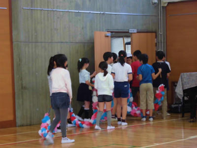 代表委員会児童は、1年生を迎える会のための準備を昼休みに行いました。