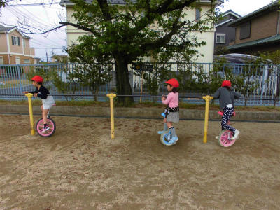 一輪車の練習をしていました。