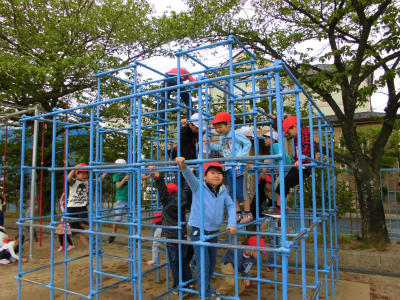 ジャングルジム、たくさんの子が上を目指して登っていました。