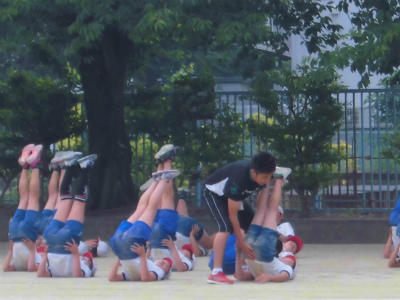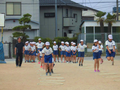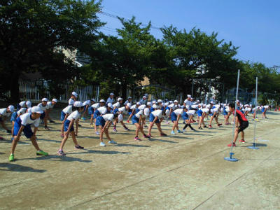 準備運動を丁寧に行ってから、それぞれの学年の運動に入ります。