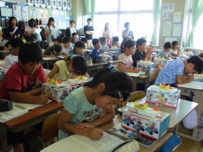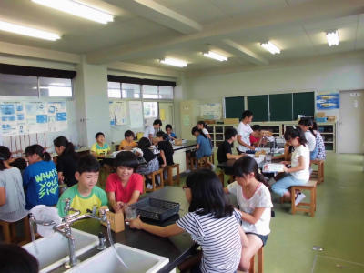 6年生家庭科。洗濯板での洗濯についての振り返りを行っています。