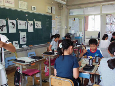 6年生 水墨画を体験しています。伝統文化についての学びを深める総合の時間です。