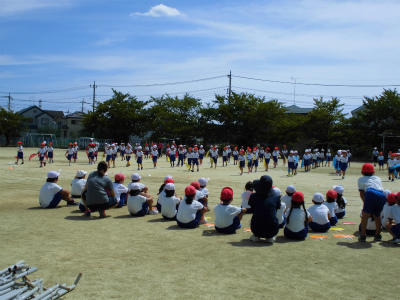 朝と1時間目、全校児童で運動会練習を行いました。少しの休憩時間もありましたが、1時間程度の練習に、子どもたちは集中して臨むことができました。